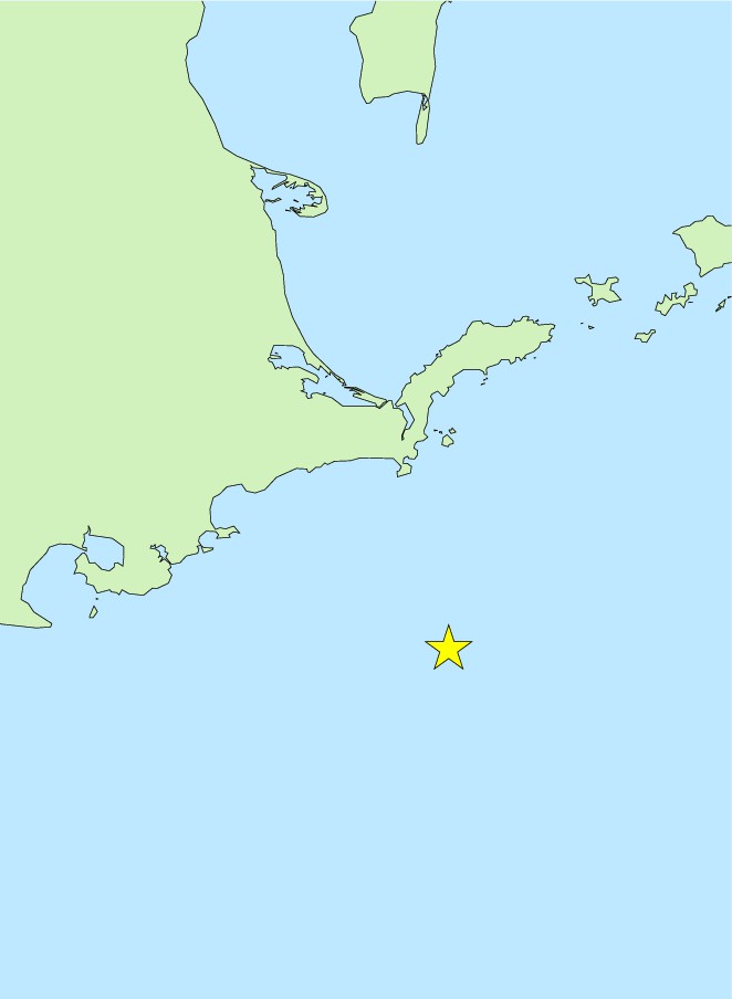 震源位置 : 根室半島南東沖(北緯42.9度、東経145.6度)