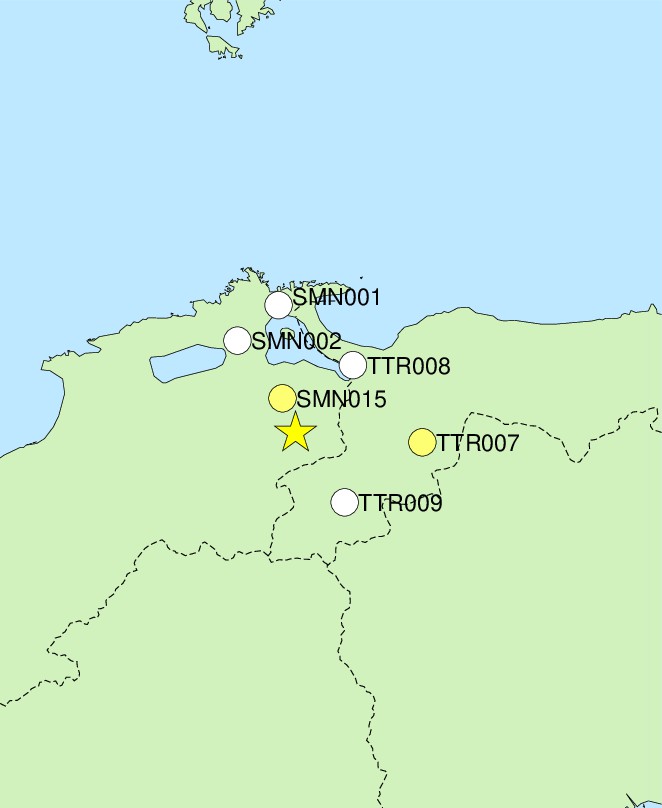 震源位置 : 島根県東部(北緯35.3度、東経133.2度)